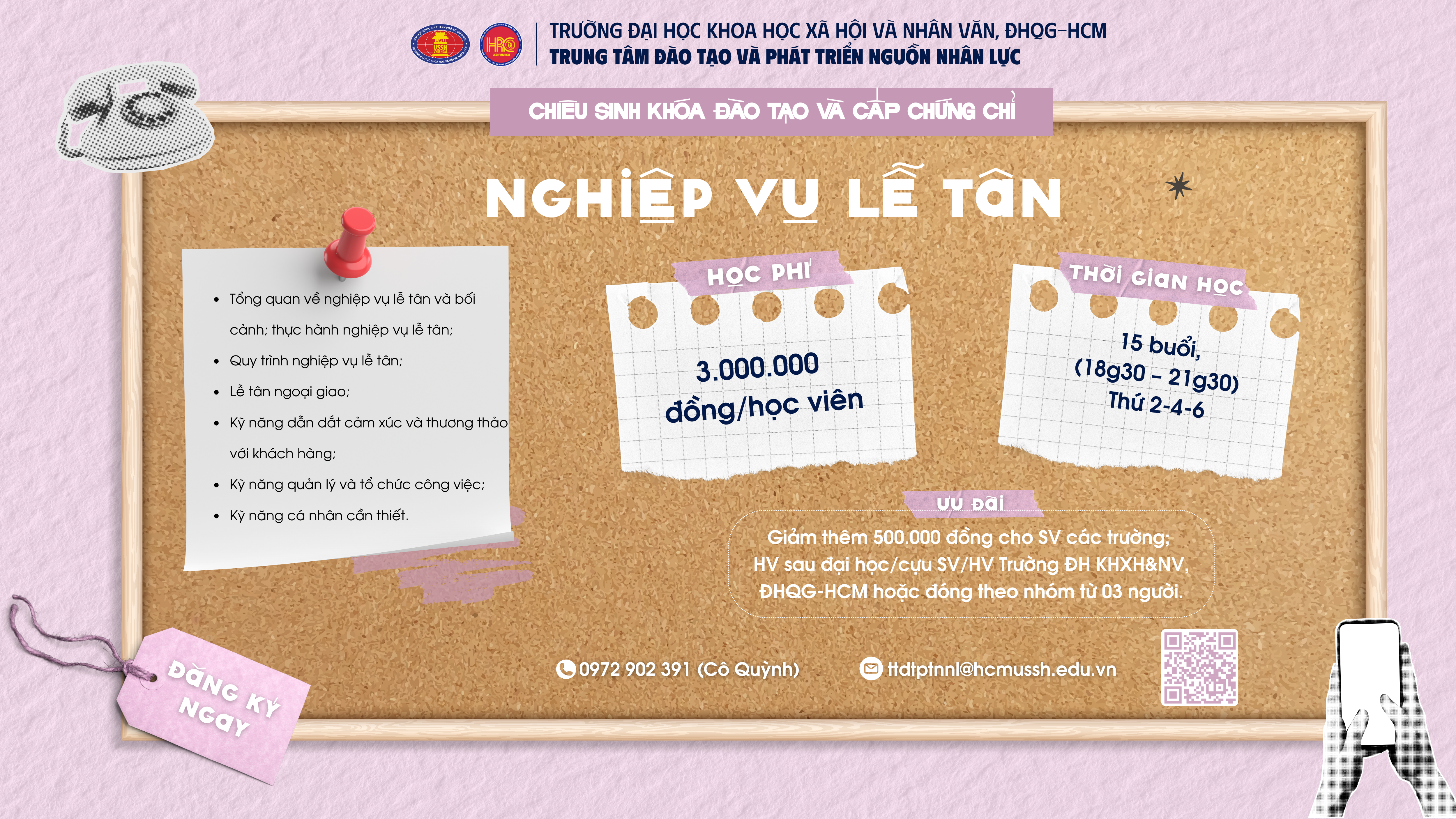 Mọi thông tin liên hệ: Trung tâm Đào tạo và Phát triển nguồn nhân lực
