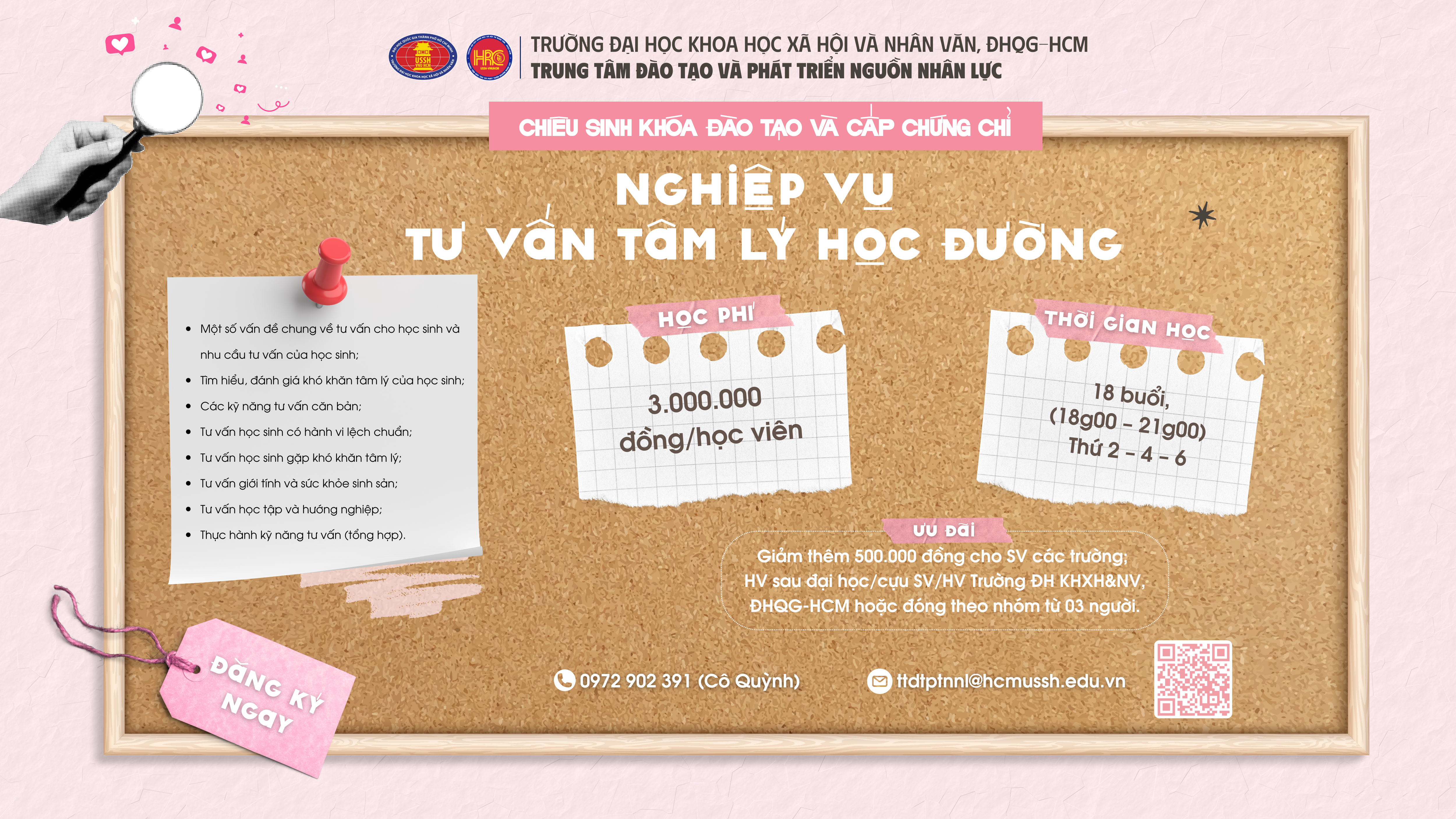 THÔNG TIN KHÓA ĐÀO TẠO NGHIỆP VỤ TƯ VẤN TÂM LÝ HỌC ĐƯỜNG: