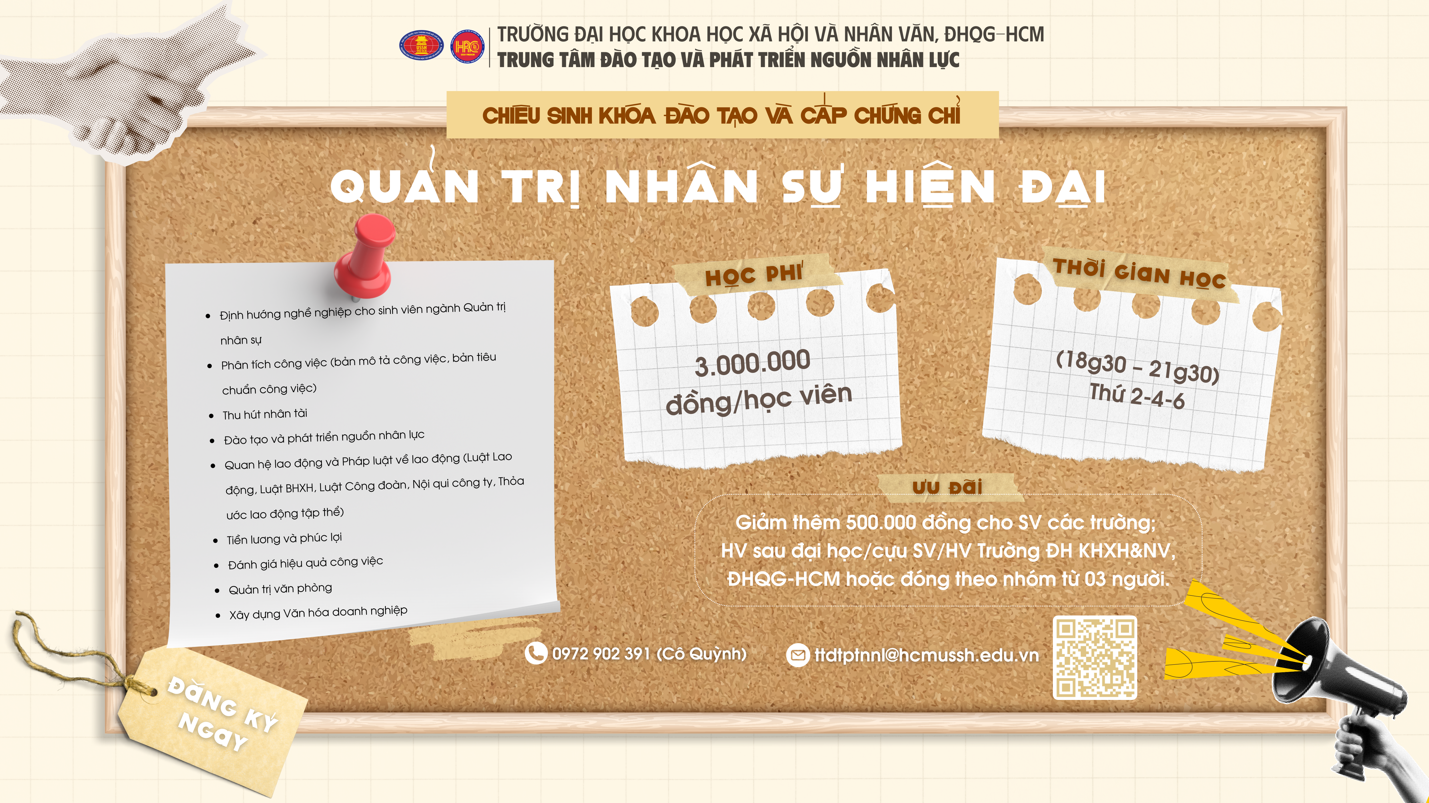THÔNG TIN KHÓA ĐÀO TẠO QUẢN TRỊ NHÂN SỰ HIỆN ĐẠI: